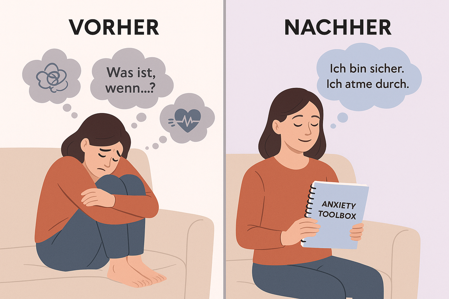 Sie ist ein praxisnahes, einfach anzuwendendes Set an Werkzeugen, das dir Schritt für Schritt hilft, deine Ängste zu verstehen und souverän damit umzugehen – genau abgestimmt auf dein Tempo und deine Bedürfnisse.